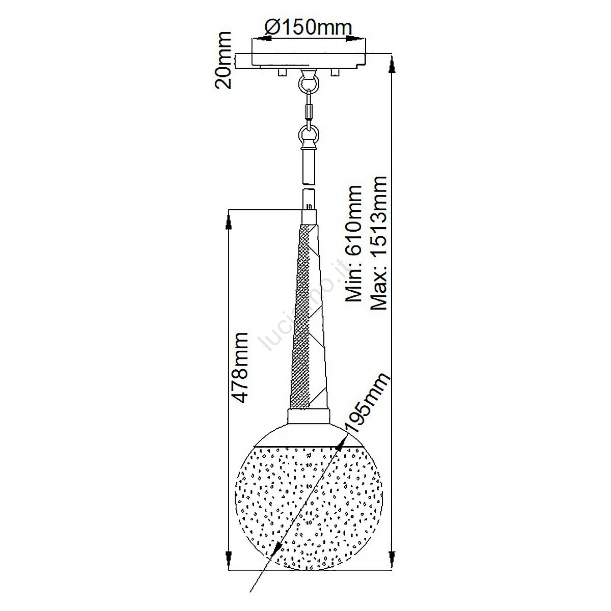 Quintiesse - Lampadario su asta MARILYN 1xE27/60W/230V diam. 19,5 cm cromo lucido/nero
