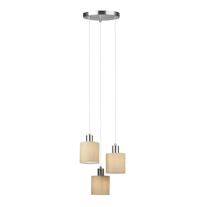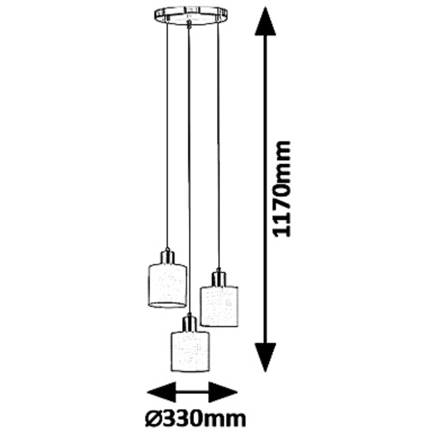 La lampada a sospensione tripla Natina è caratterizzata da un design e da colori moderni e sobri. Il corpo in metallo della lampada, realizzato in una combinazione di colori marrone-cromo satinato, è completato da paralumi cilindrici in tessuto e da una base decorativa in metallo. La larghezza della tripla lampada a sospensione è di 330 mm, il diametro della base decorativa rotonda è di 220 mm e la distanza dalla parete è di 1170 mm. Con tre paralumi che pendono ad altezze diverse, questa lampada a sospensione sarà una soluzione davvero spettacolare per illuminare il vostro soggiorno moderno o la vostra sala da pranzo. L'illuminazione interna Natina può essere utilizzata con tre lampadine a risparmio energetico con una potenza massima di 25 W ciascuna. Se si desidera migliorare l'atmosfera intima e accogliente, utilizzare lampadine che emettono una luce bianca calda. Il tipo di filettatura è E14. La tripla lampada a sospensione Natina viene fornita senza lampadine.