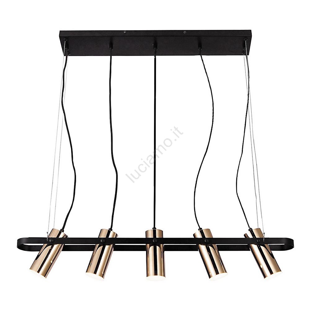 Consigliamo la lampada a sospensione a cinque luci Raven a coloro che non si lasciano sorprendere da una grande e sorprendente soluzione nell'arredamento della propria casa. Il design della lampada a sospensione Raven, realizzata in stile industriale in una combinazione di colori nero opaco e oro, non è affatto ordinario. Il corpo in metallo della lampada, dotato di una base decorativa rettangolare di colore nero opaco, è completato da paralumi cilindrici allungati, anch'essi in metallo. Le cinque teste dorate della lampada sono incorniciate da un elemento ovale allungato. Irradiando una luce bianca calda, la lampada a sospensione sarà un'aggiunta di stile agli interni del vostro salotto moderno. Le sorgenti luminose LED integrate nella lampada Raven hanno una potenza totale di 25 W, un'intensità luminosa di 2.000 lumen e una temperatura di colore di 3.000 K. La larghezza della lampada è di 820 mm e la sua distanza dal soffitto è di 1200 mm. La lampada a sospensione Raven è coperta da una garanzia di 5 anni.