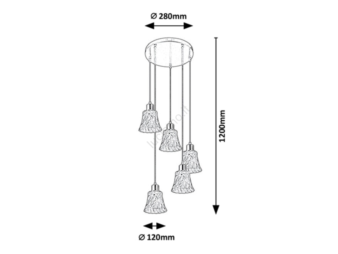 Il lampadario Hestia con 5 lampadine in stile classico sarà un elemento elegante per il vostro soggiorno, sala da pranzo o forse la camera da letto. Il corpo illuminante in metallo cromato è completato da paralumi in vetro trasparente. Il lampadario può essere fissato al soffitto tramite una grande base decorativa rotonda. La particolarità dei paralumi a campana, sospesi a diverse altezze, è l’effetto ondulato della loro superficie increspata. Questo lampadario sospeso, grazie alle sue dimensioni, è ideale anche per illuminare ambienti più ampi. Il modello Hestia può ospitare cinque lampadine, ciascuna con una potenza fino a 40W. Il tipo di attacco è E14. Per migliorare l’atmosfera intima e accogliente, consigliamo di scegliere sorgenti luminose a luce calda bianca. Le dimensioni del lampadario Hestia con 5 lampadine sono le seguenti: diametro di ogni paralume 120 mm, diametro totale del lampadario 280 mm, distanza dal soffitto 1.200 mm. Questo modello viene fornito senza sorgenti luminose.