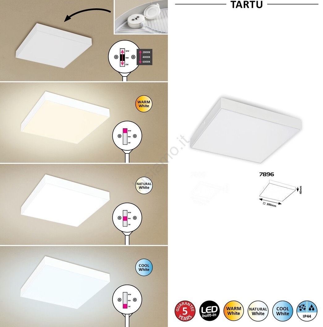 Rabalux - Plafoniera LED/24W/230V 2800-6000K IP44 bianca 30x30 cm