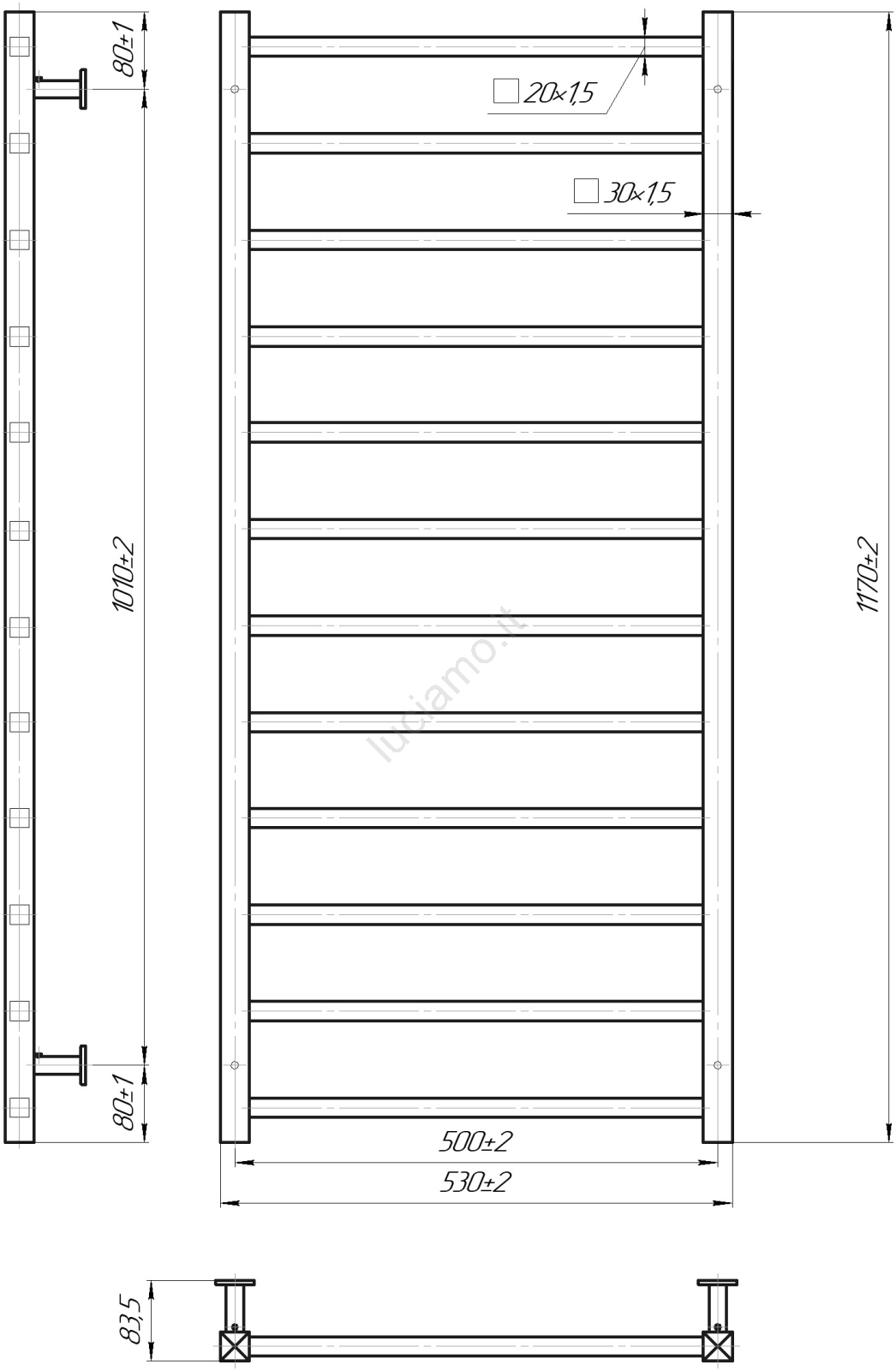 Radiatore scaldasalviette a scala per bagno INOX TOKIO 233W/230V 117x53 cm acciaio inox/nero