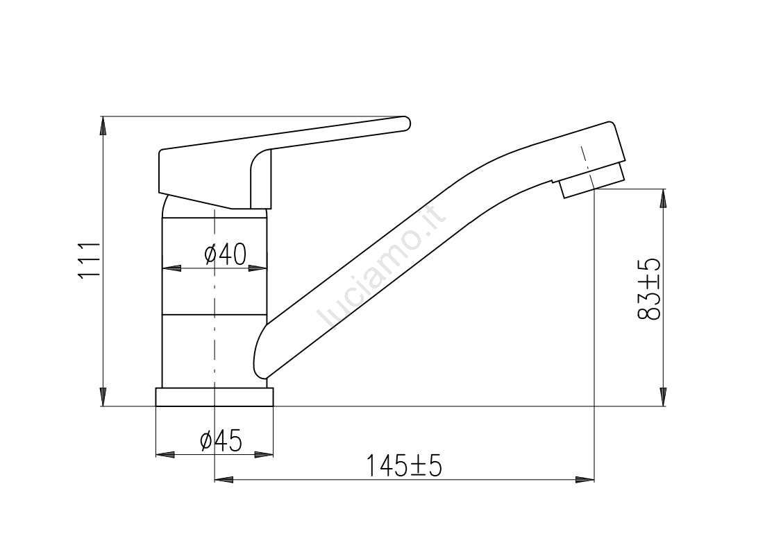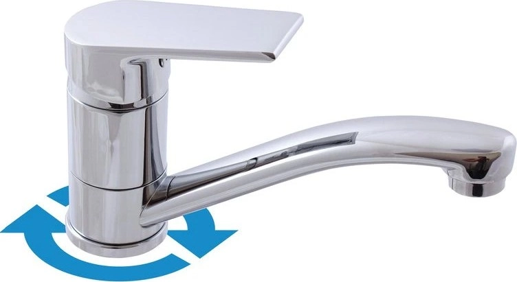 • Miscelatore monocomando da banco per lavabo senza scarico con beccuccio girevole da 150 mm.