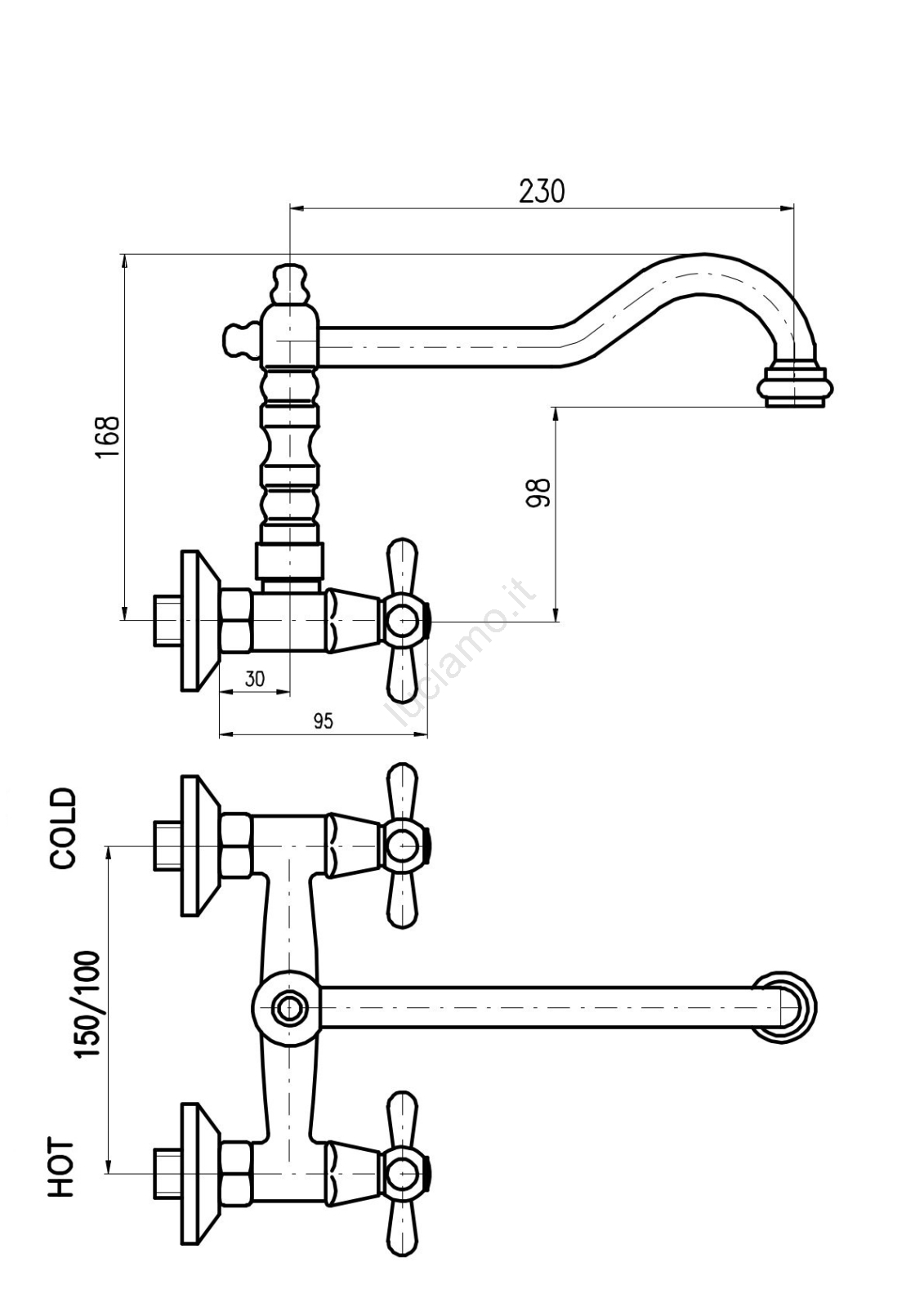 RAV Slezák MK102.5/28SM - Miscelatore per lavello/lavabo MORAVA RETRO 16,8 cm in ottone antico