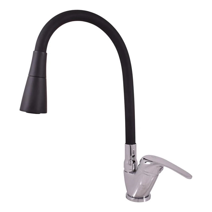 • Miscelatore da cucina monocomando da piano con beccuccio girevole flessibile e doccetta.