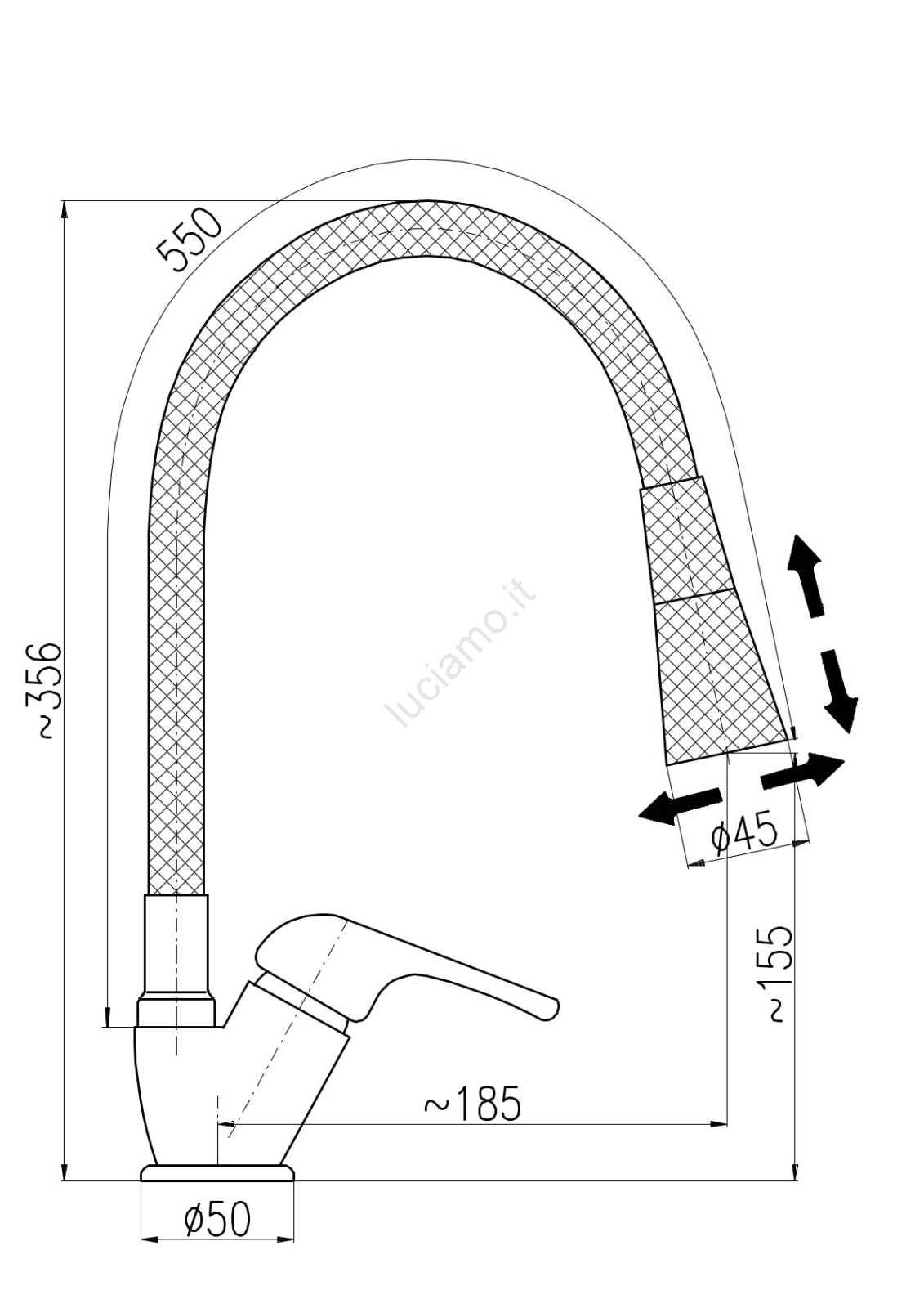• Rubinetto per lavello da banco con beccuccio girevole flessibile e doccetta.