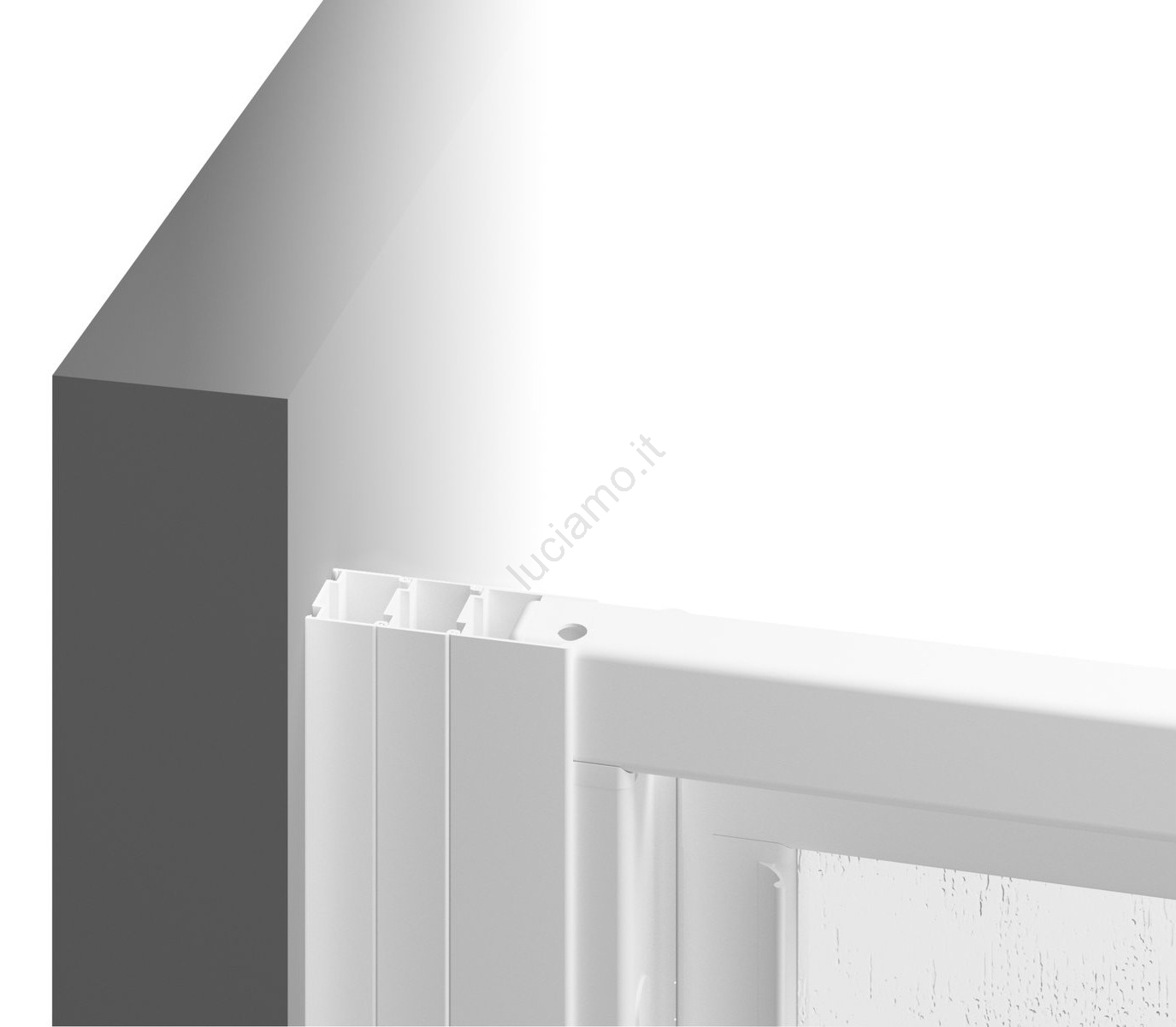 • Porte doccia a tre ante con pannelli in plastica opaca.