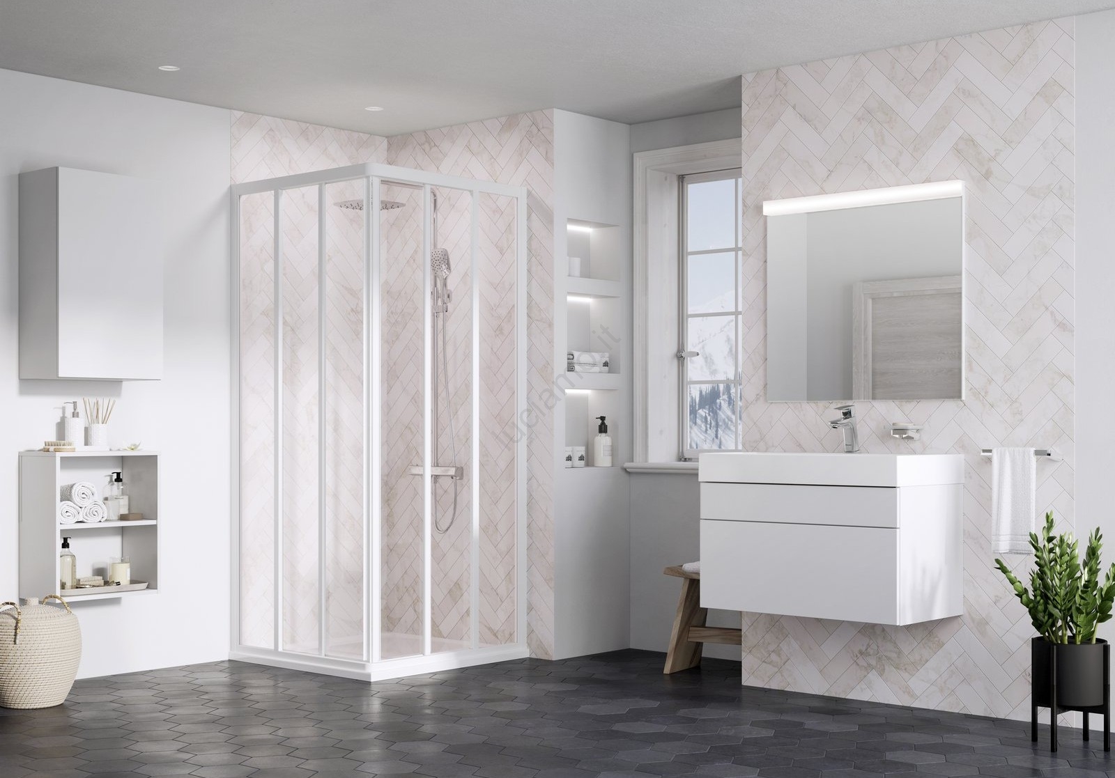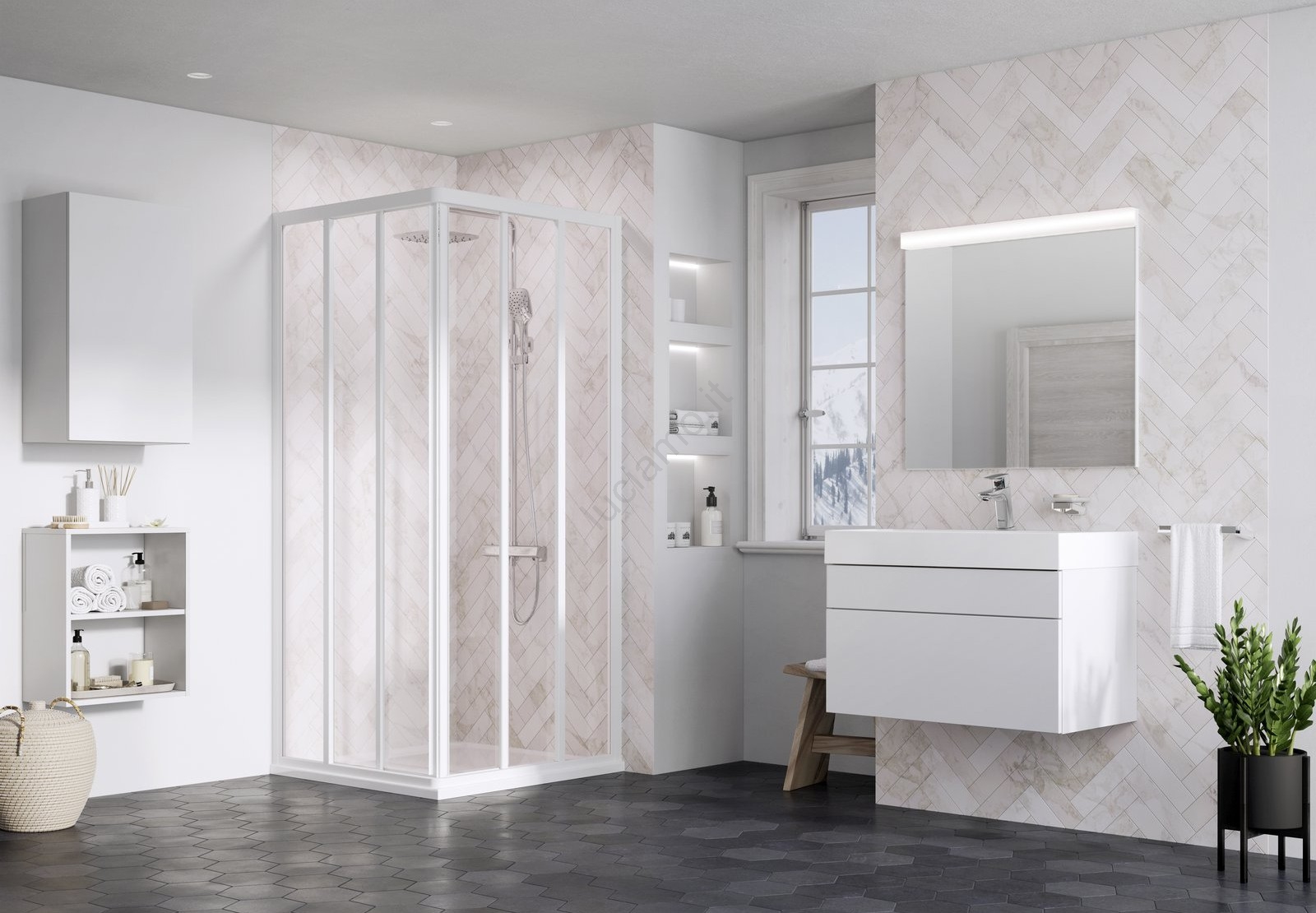• Il telaio bianco abbinato al vetro trasparente conferisce al box doccia un aspetto moderno e senza tempo e garantisce una lunga durata.