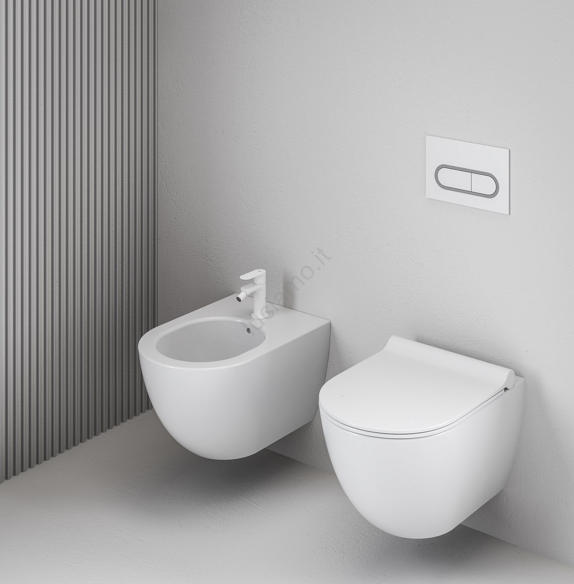 • Il bidet sospeso Uni Chrome in finitura bianca unisce un design elegante a un utilizzo pratico per l'igiene quotidiana.