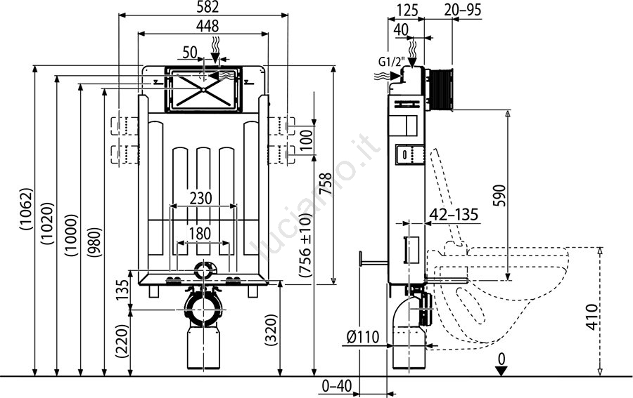• Il modulo base per WC sospeso con interasse di 180 o 230 mm è progettato per l'incasso e il rivestimento.