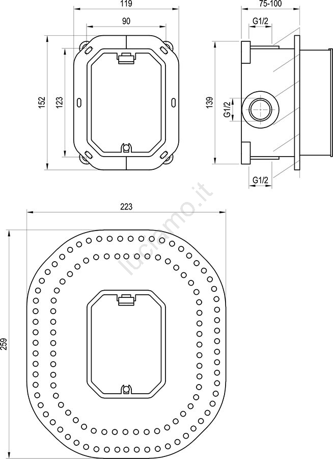 • Elevata flessibilità di incasso su profondità 75 - 100 mm.