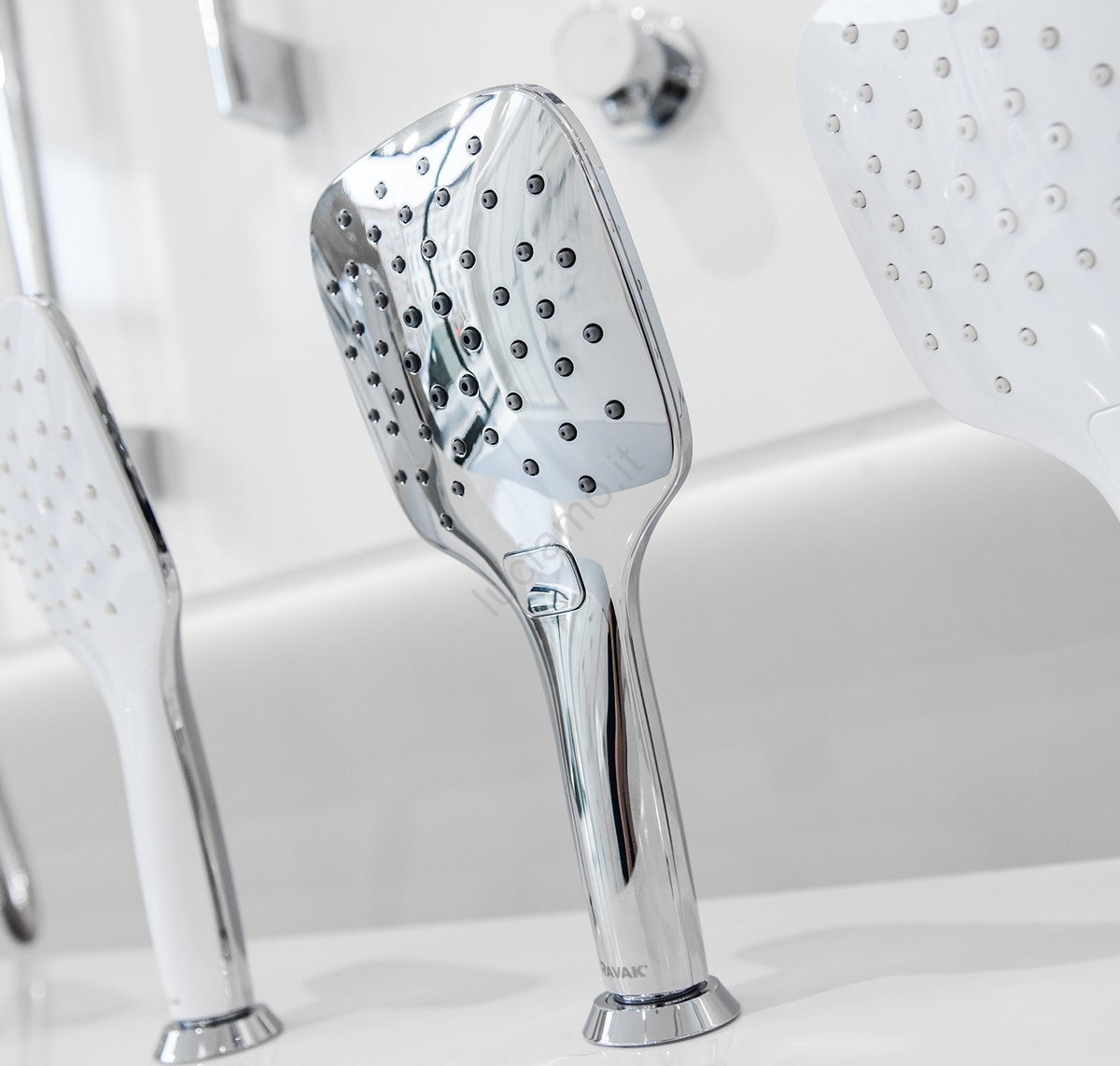 • Il deviatore permette di passare facilmente tra soffione, doccetta o posizione centrale, con il soffione che offre la modalità Rain e la funzione Air per un getto più piacevole ed economico.