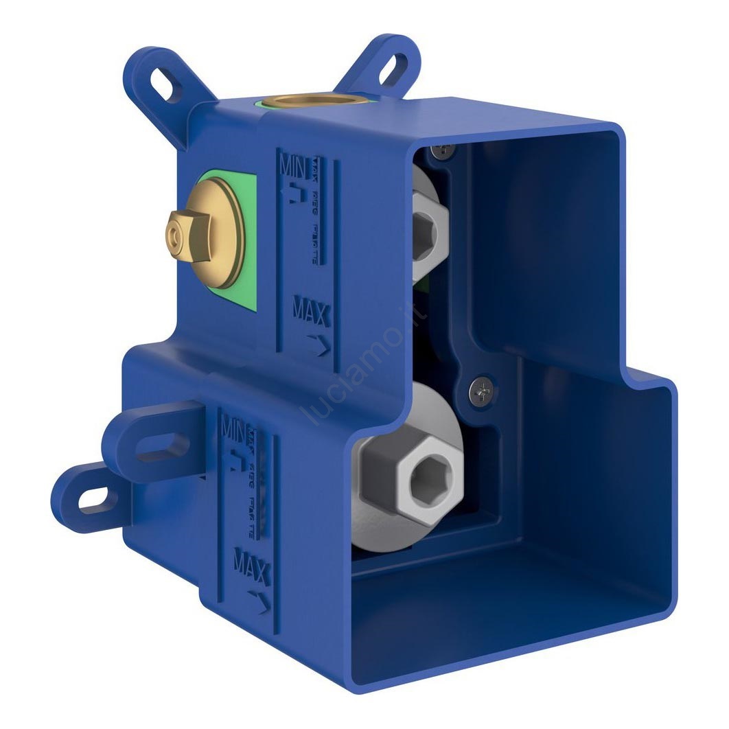 • R-box è un sistema di installazione universale per miscelatori da incasso a 2 vie, incorporato nella parete.