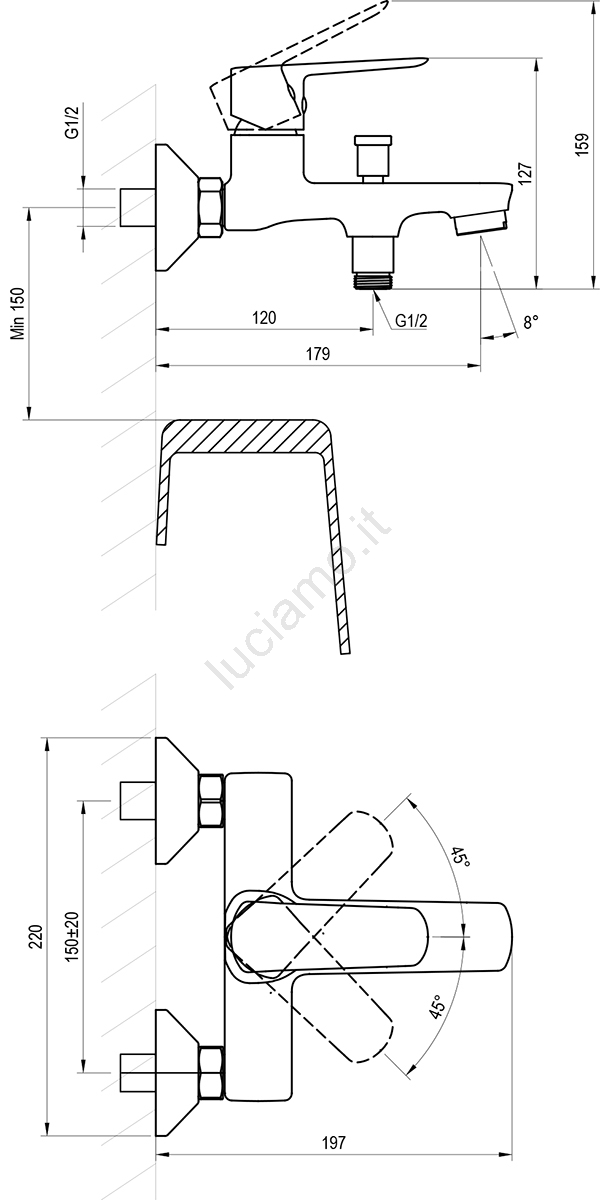 • Interasse: 150 mm.