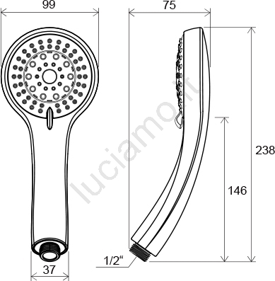• La testa dal diametro di 99 mm garantisce una distribuzione uniforme del getto d'acqua.