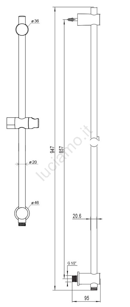 • Uscita dell'acqua da incasso direttamente nell'asta con filetto esterno G1/2".