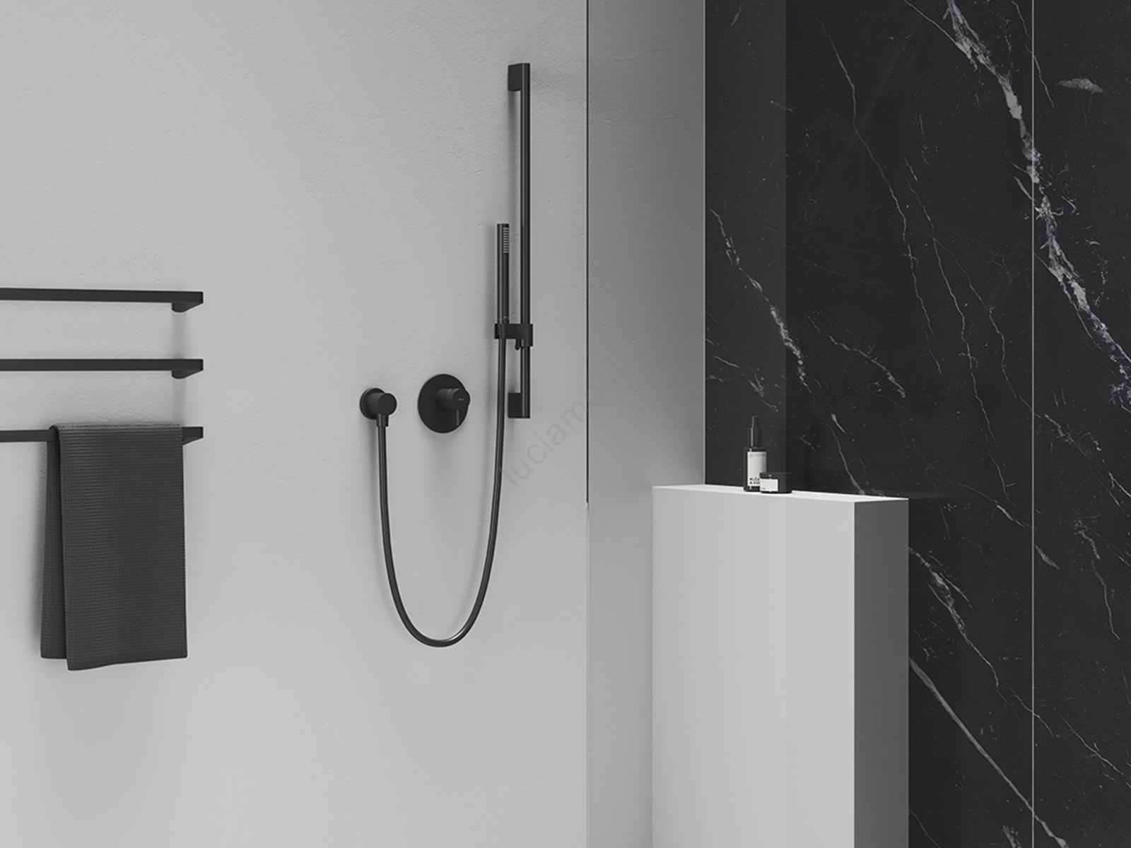 • Il supporto per doccetta è realizzato in ottone resistente e rifinito con la moderna superficie nera opaca Black Matt.