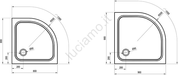 • Diametro del foro per il sifone: 9 cm.