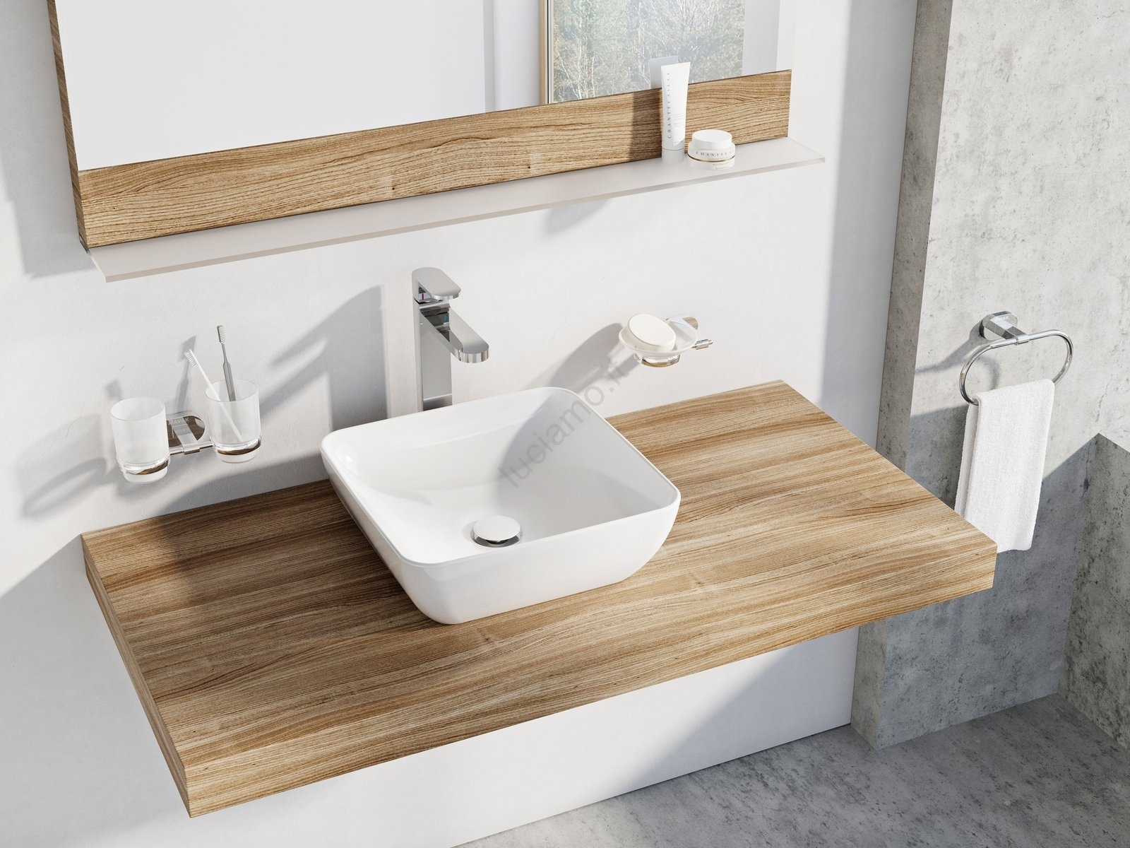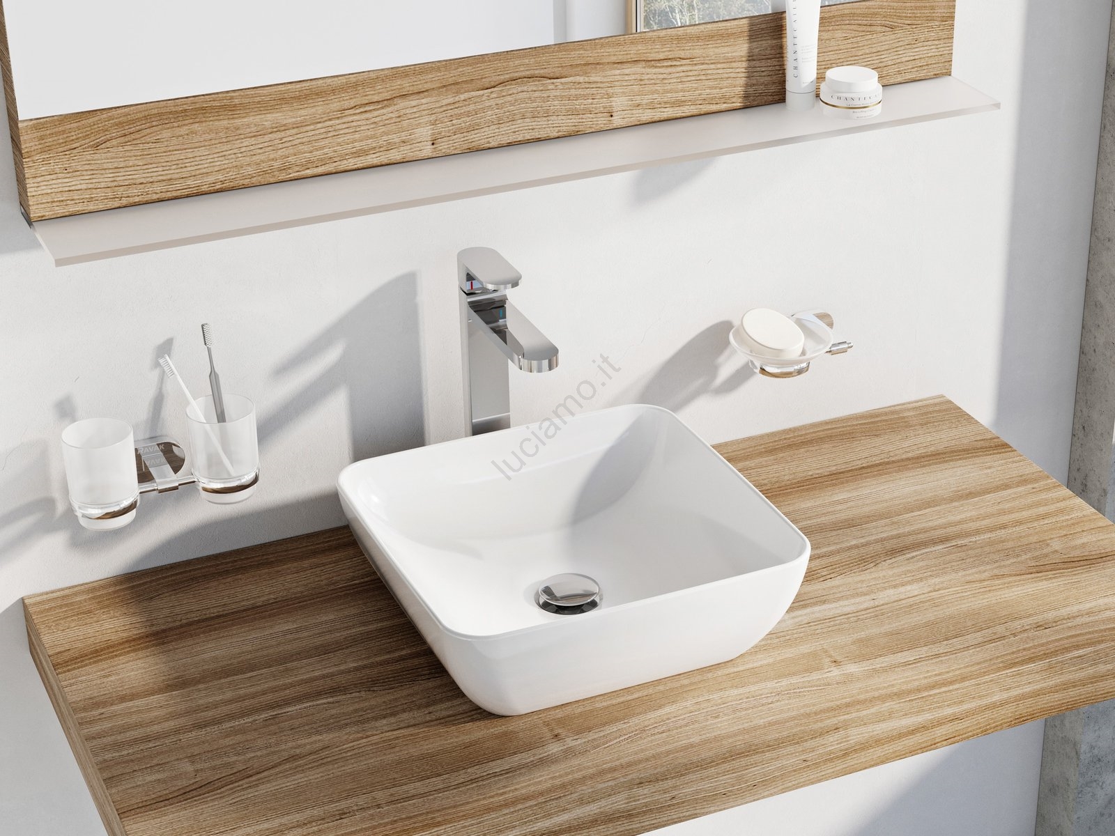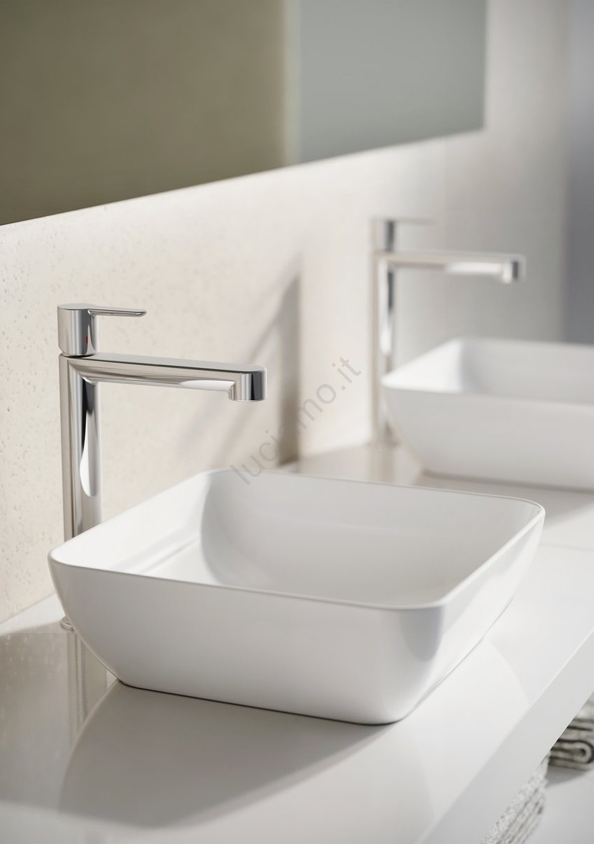 • Lavabo da appoggio in ceramica.