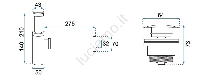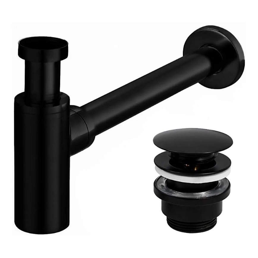 REA-A5215 - Sifone per lavabo con piletta CLICK-CLACK, diametro 6,4 cm, nero opaco