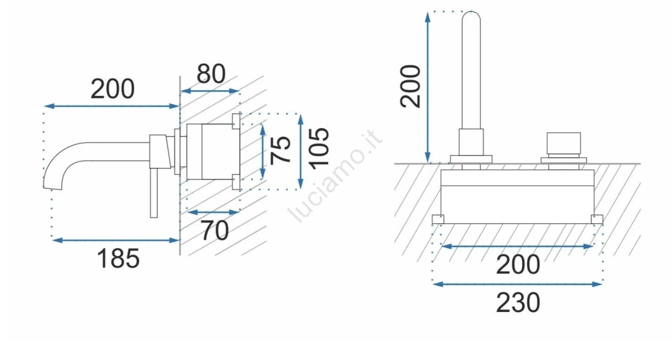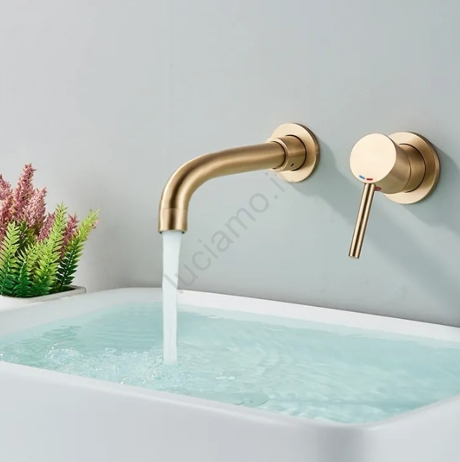 REA-B4109 - Miscelatore per lavabo ad incasso LUNGO, finitura oro spazzolato