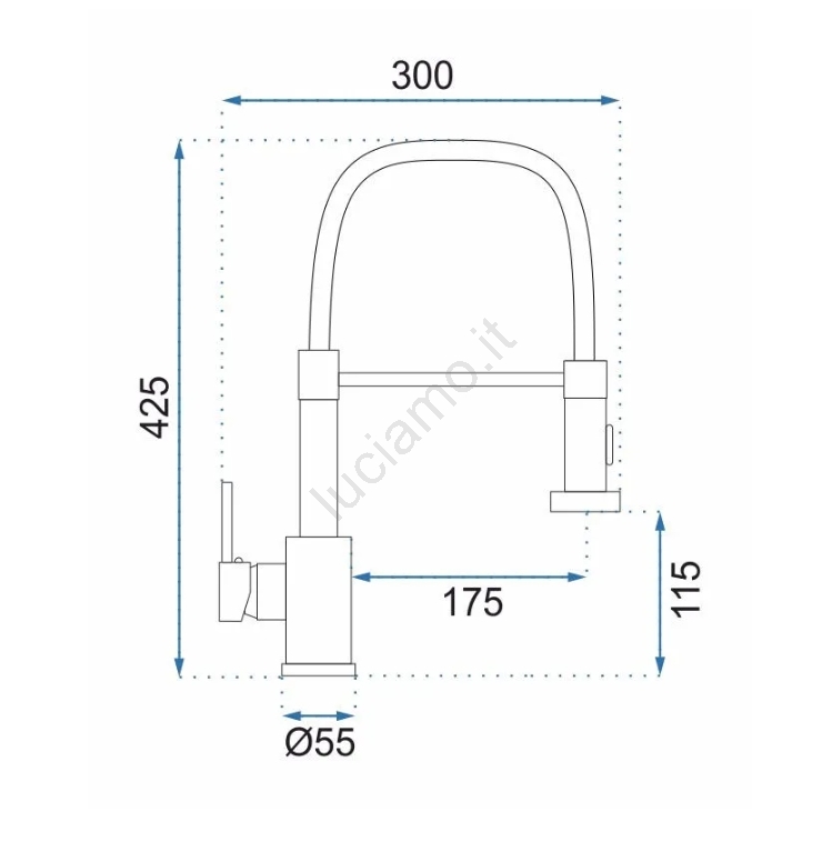 • Rubinetto da cucina monocomando ad alta pressione con braccio girevole.