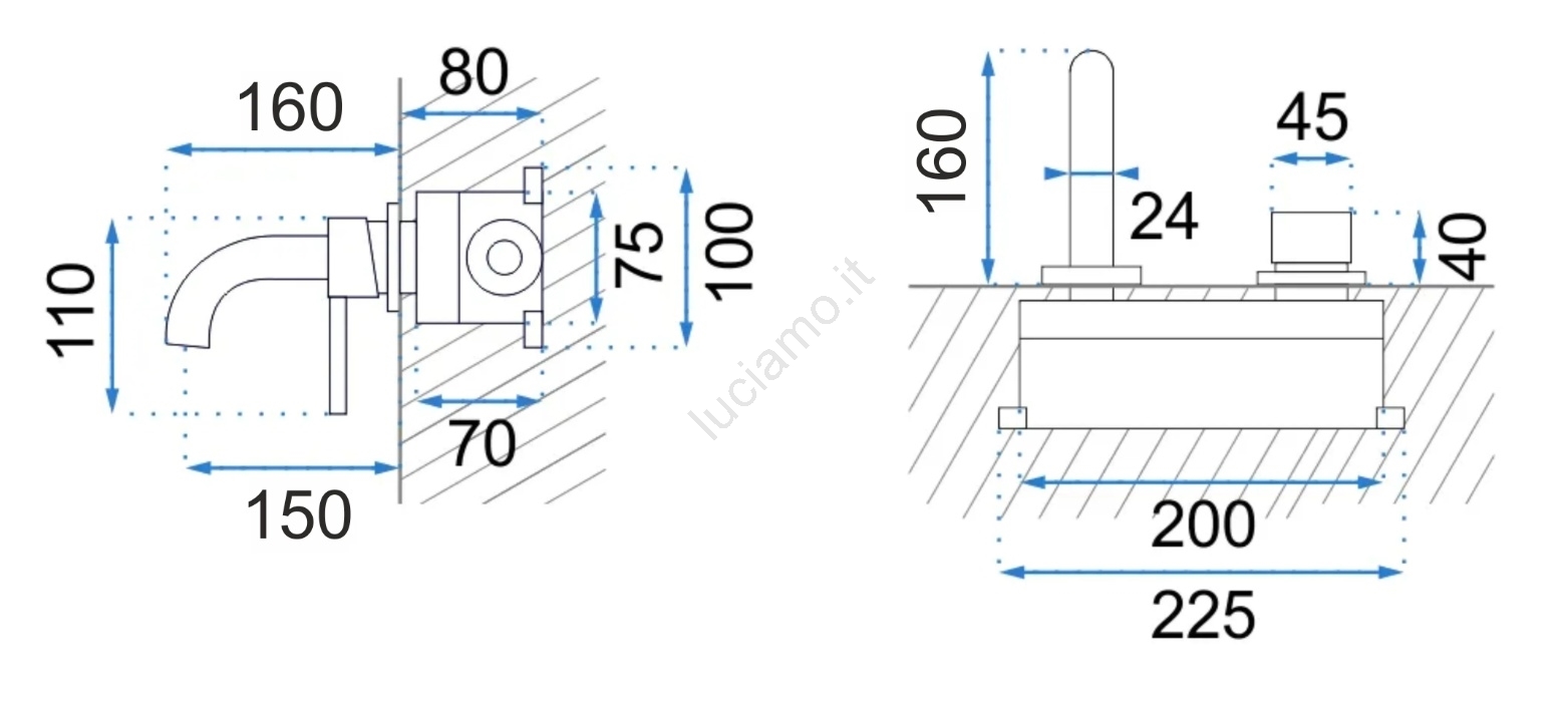 REA-B8652 - Miscelatore per lavabo da incasso LUNGO, finitura oro spazzolato