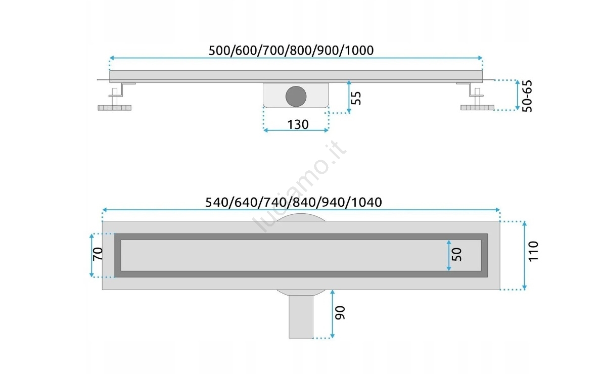 • Grazie alle gambe regolabili in altezza (50–65 mm) la canalina può essere facilmente adattata a diverse condizioni del pavimento.