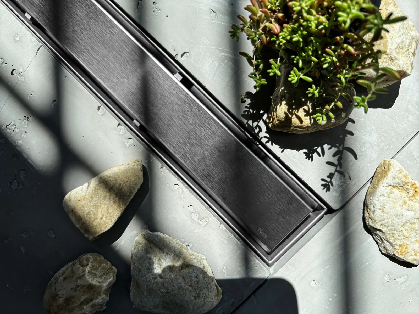 • Scarico lineare di 90 cm in finitura acciaio spazzolato.