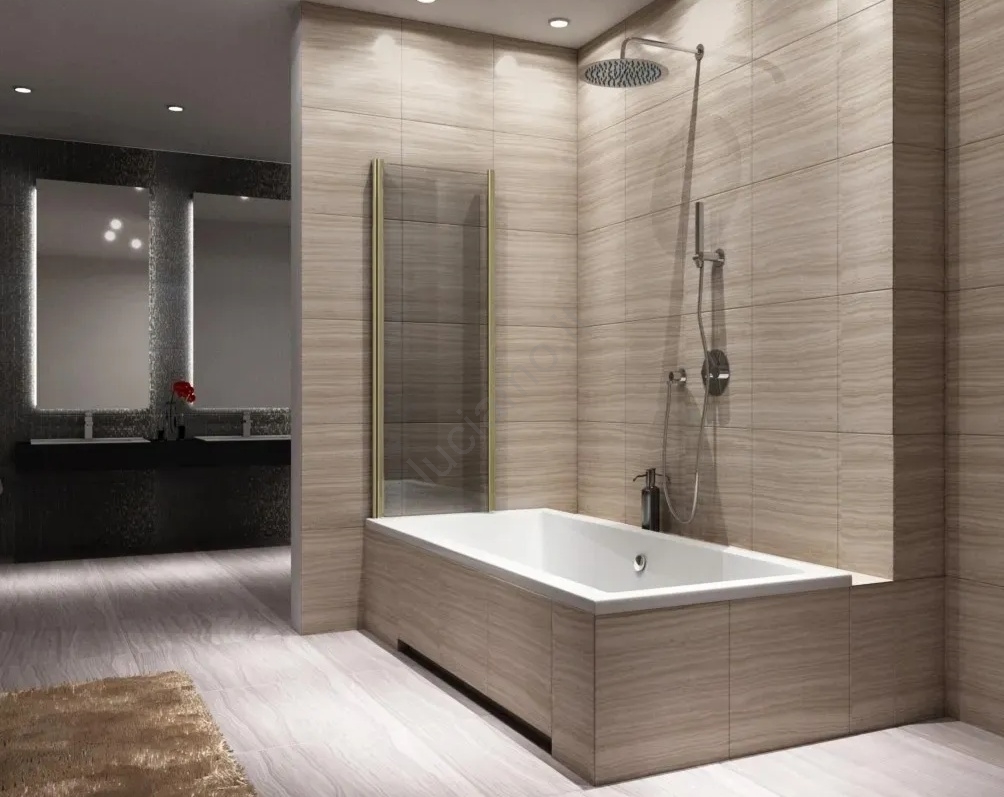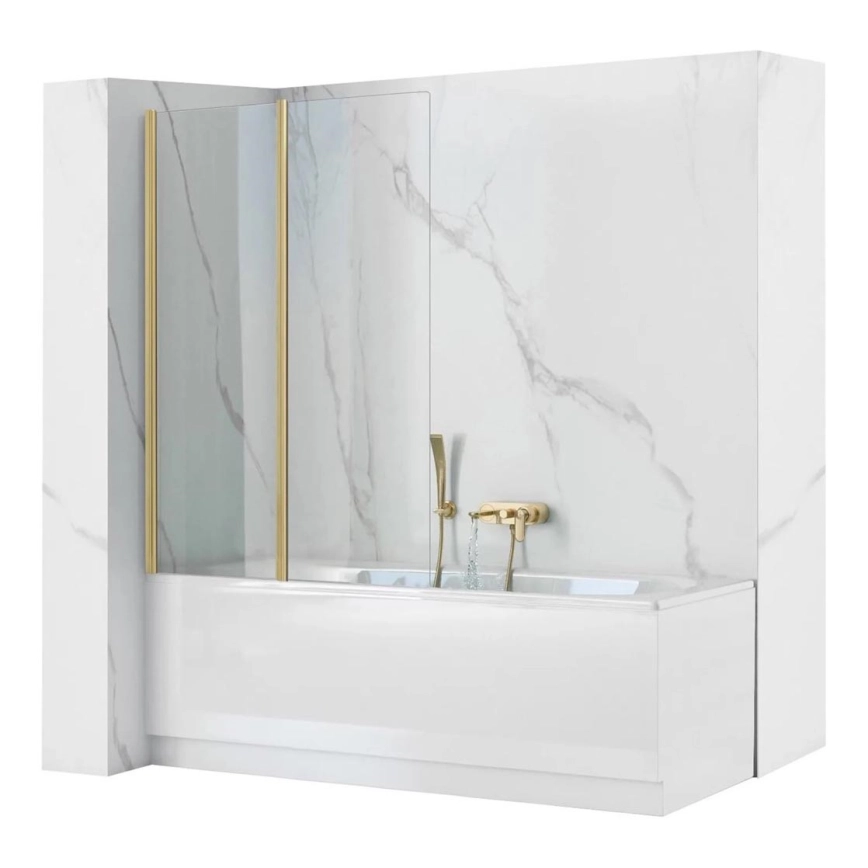 REA-K9777 - Pannello doccia pieghevole per vasca AGAT 140x100 cm, finitura oro spazzolato/vetro trasparente