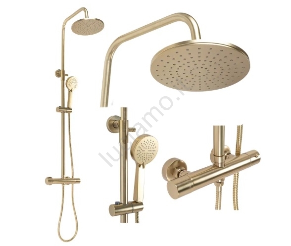 REA-P2323 - Set doccia con miscelatore termostatico PAROT, finitura in oro spazzolato