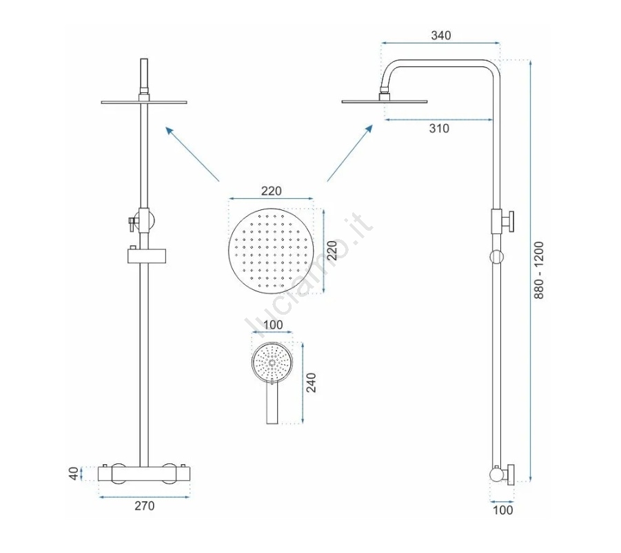 • Regolazione dell'asta doccia: 88 - 120 cm.