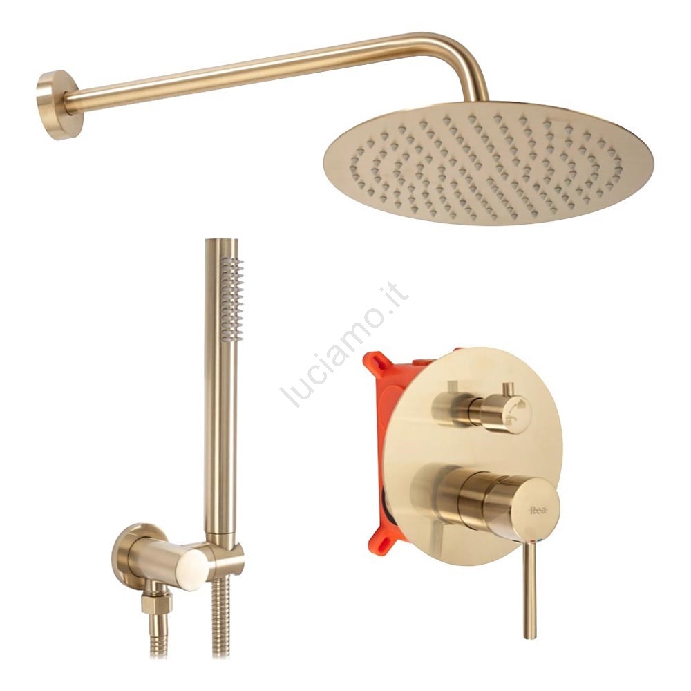REA-P4160 - Set doccia con miscelatore da incasso LUNGO, finitura oro spazzolato