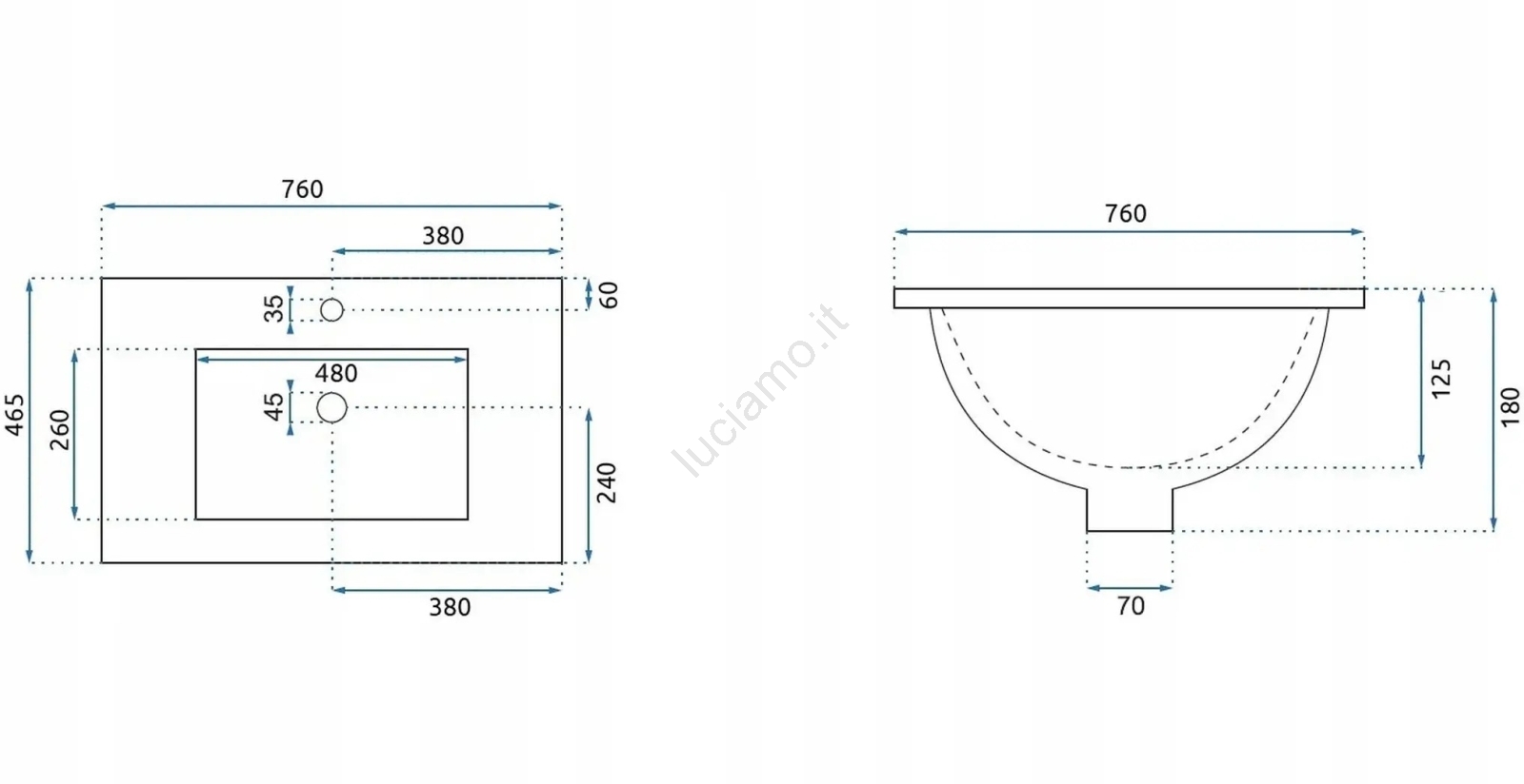 • La rubinetteria per lavabo e lo scarico non sono inclusi nella confezione.
