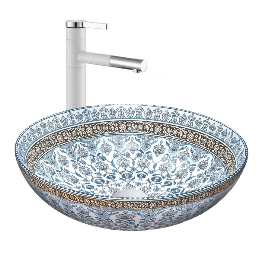 REA-U0267 - Lavabo da appoggio ARTE Ø 40 cm in ceramica con motivo ornamentale