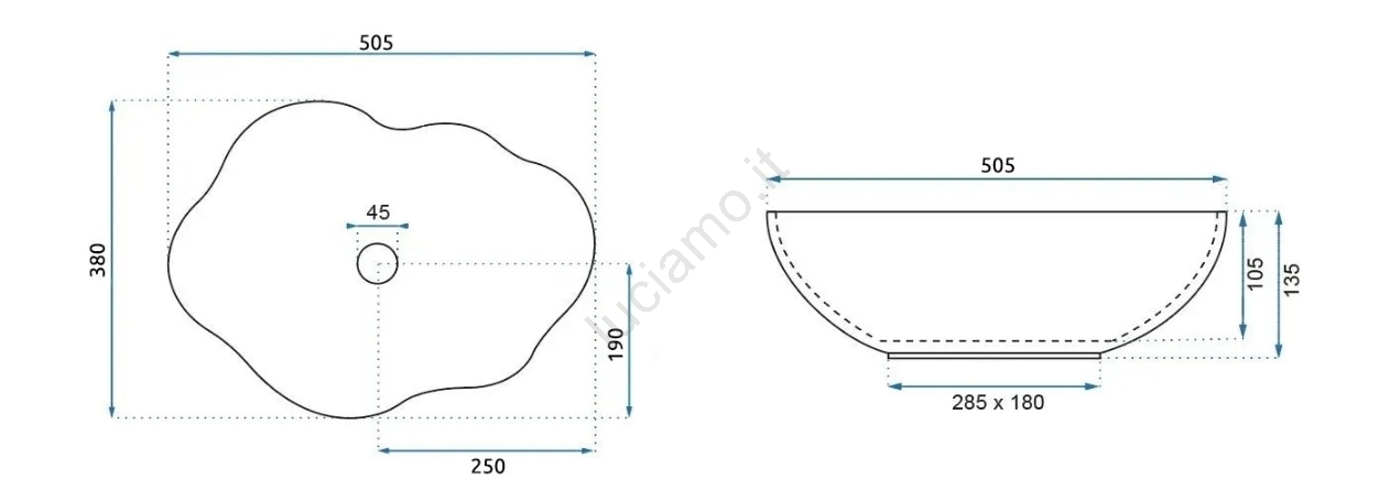 • REA-U4620 - Lavabo da appoggio AURA 38,5x50,5 cm ceramica/bianco lucido