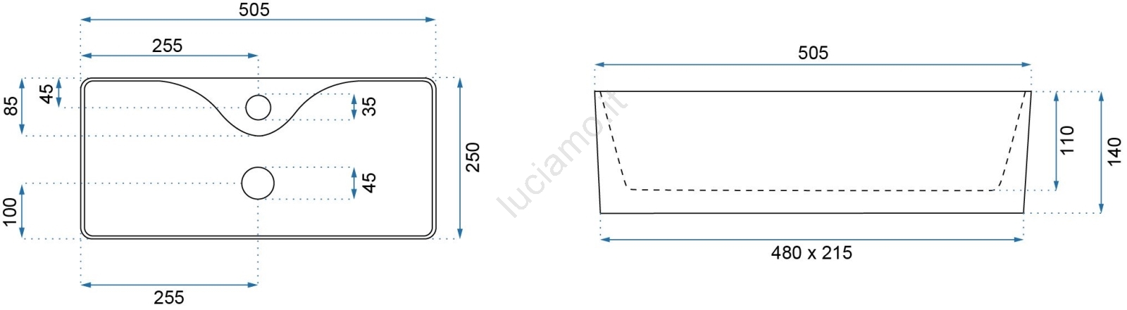 REA-U0699 - Lavabo da appoggio MERY 25x50,5 cm ceramica/bianco lucido
