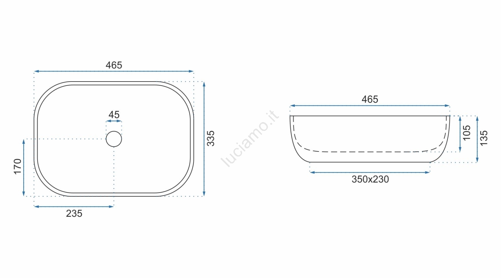 • REA-U6521 - Lavabo da appoggio BELINDA SLIM 33x46,5 cm ceramica/bianco lucido