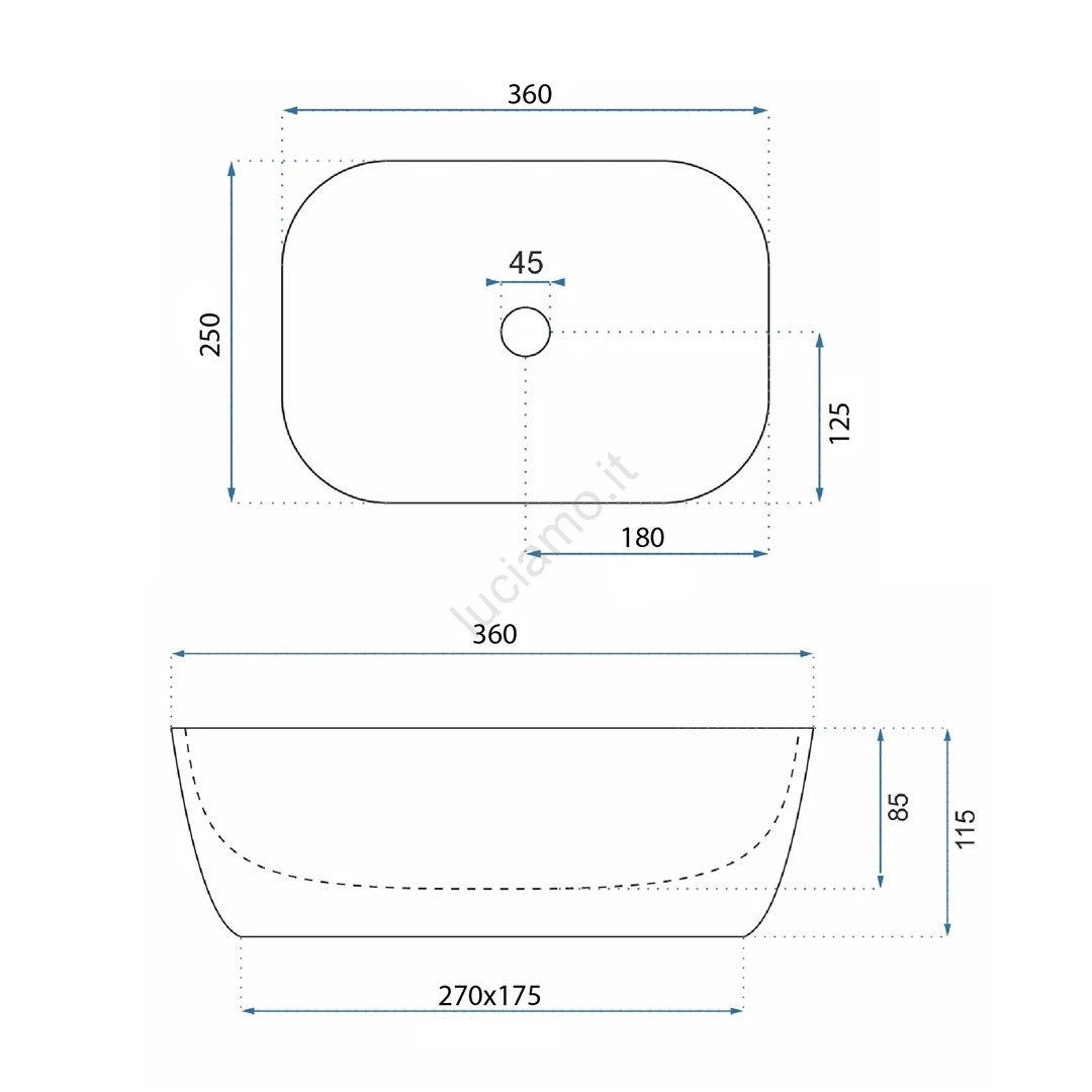 • REA-U5667 - Lavabo da appoggio BELINDA MINI 25x36 cm ceramica/bianco lucido