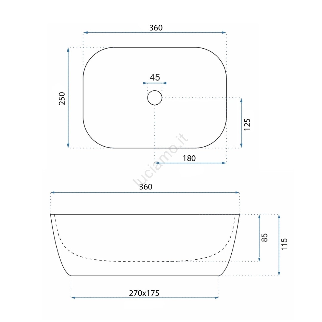 • REA-U5667 - Lavabo da appoggio BELINDA MINI 25x36 cm ceramica/bianco lucido