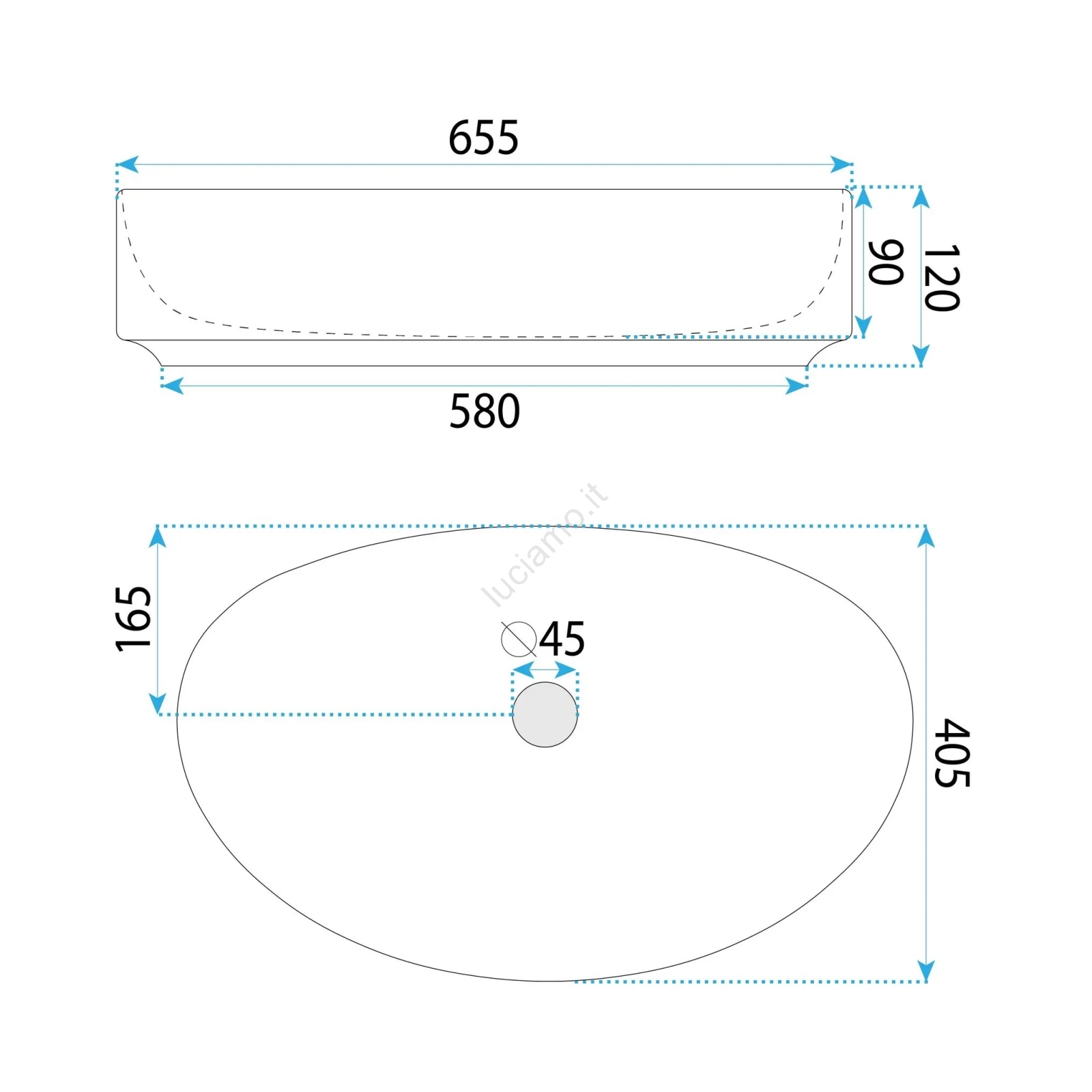 • Il lavabo è destinato all'installazione su piano, ma può essere abbinato anche a un mobile.