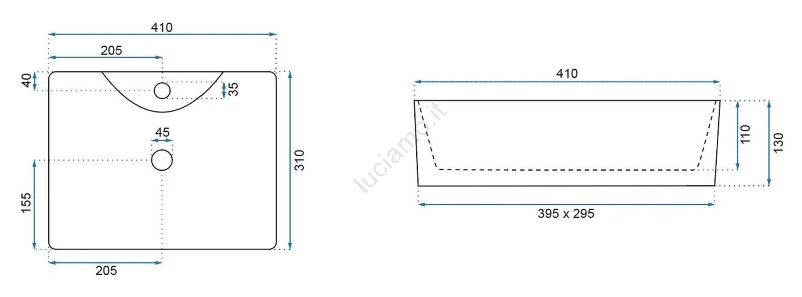 • Lavabo moderno ed elegante senza troppopieno.