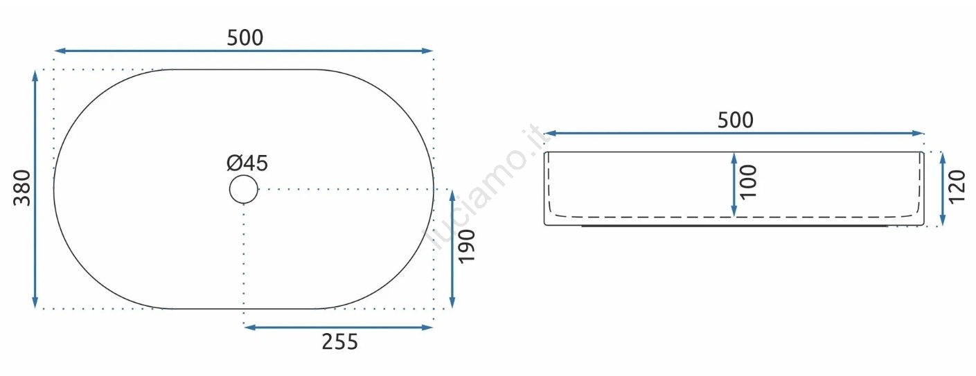 REA-U6563 - Lavabo da appoggio NADIA 38 x 50 cm, ceramica, bianco lucido