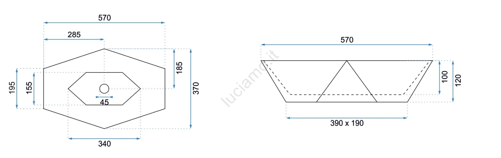 • Lavabo moderno ed elegante senza troppopieno.