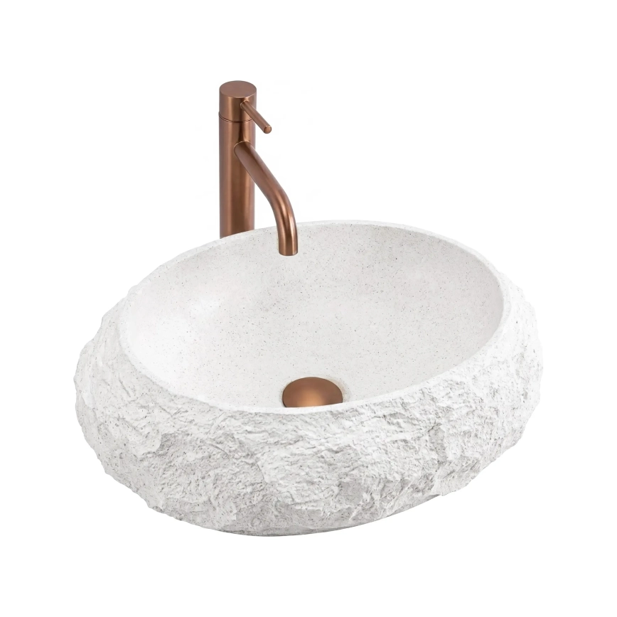 • REA-U7350 - Lavabo da appoggio MIKA 38x50 cm bianco/effetto pietra