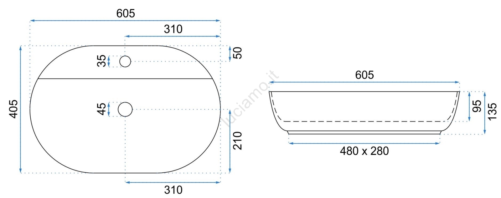 REA-U7900 - Lavabo da appoggio AURA 40,5x60,5 cm ceramica/bianco lucido