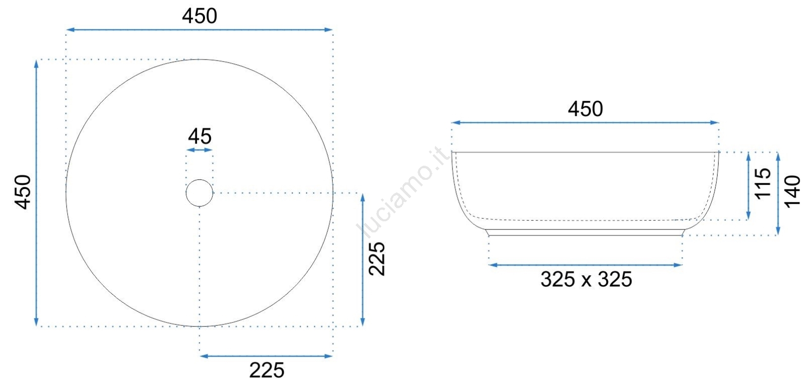 REA-U8493 - Lavabo da appoggio ELMA Ø 45 cm in ceramica, bianco lucido