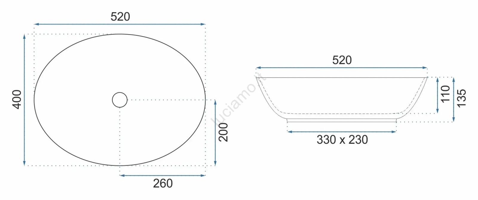 • Lavabo moderno ed elegante senza troppopieno.