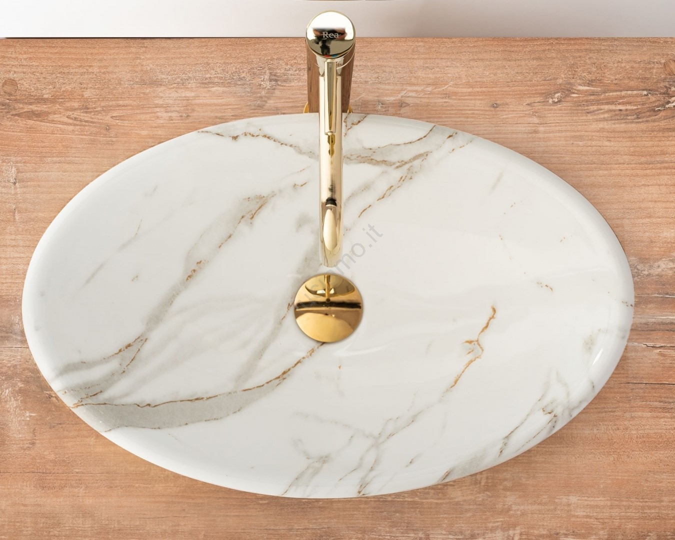 • REA-U9685 - Lavabo da appoggio PAMELA 33x53 cm, in ceramica con decoro effetto marmo