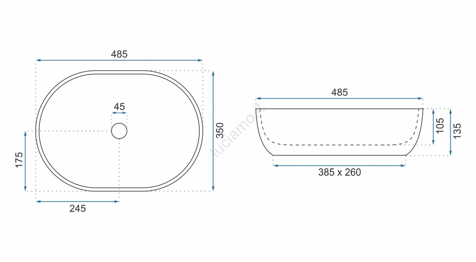 REA-U9888 - Lavabo da appoggio LARA 35x48,5 cm ceramica/effetto pietra